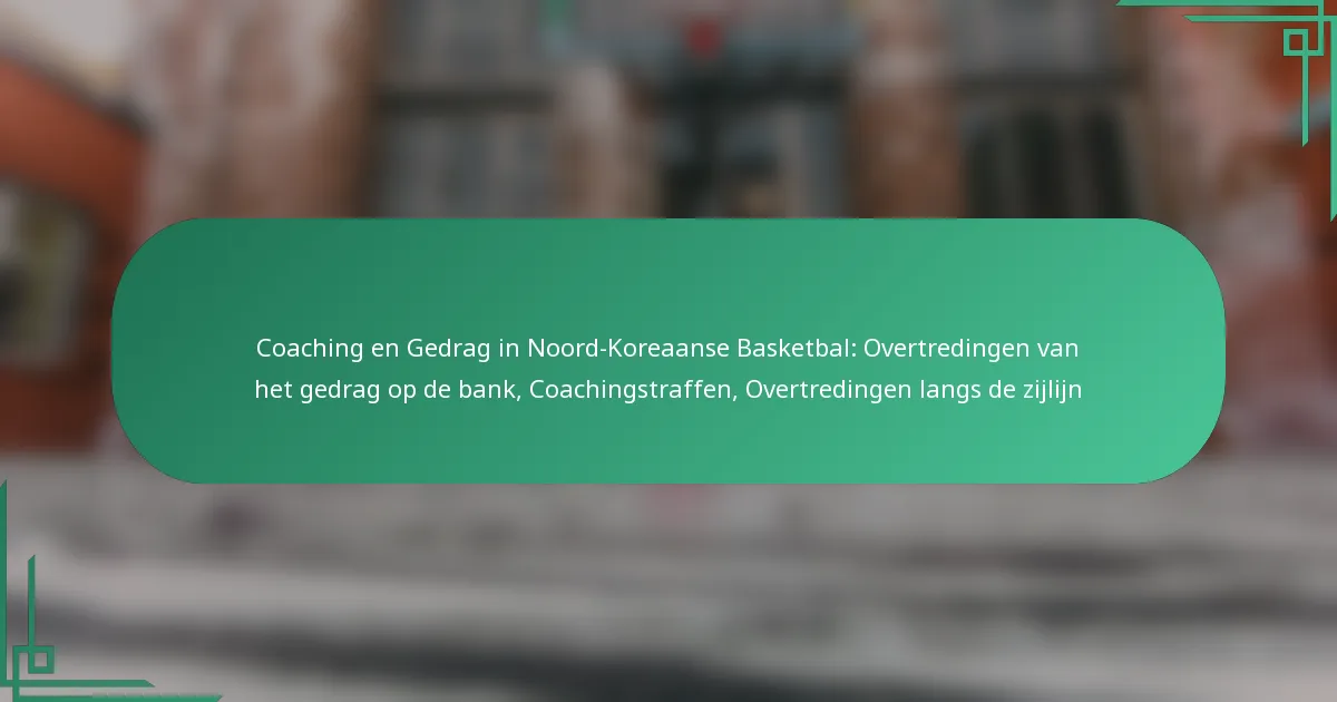 In het Noord-Koreaanse basketbal omvatten overtredingen van de gedragsregels op de bank een reeks inbreuken door coaches, spelers of teamleden die zich aan de zijlijn tijdens wedstrijden voordoen. Dergelijke overtredingen kunnen het spel verstoren en leiden tot straffen die niet alleen de prestaties van het team beïnvloeden, maar ook de moraal. Streng gehandhaafde straffen voor coaches richten zich op verschillende aspecten van het gedrag op de bank en de gedragingen aan de zijlijn, wat het belang van het handhaven van ethische normen in de sport onderstreept.